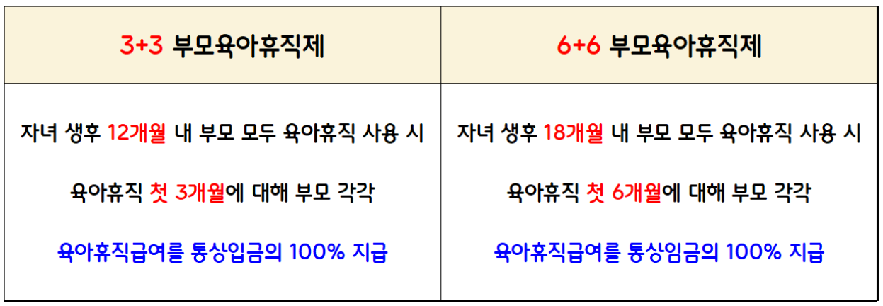 기존 3+3 부모육아휴직제에서 6+6 부모육아휴직제도로 확대